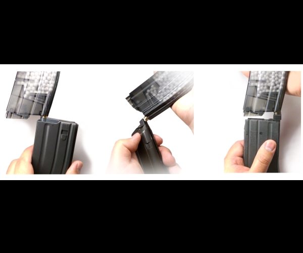 The KWA Speedloader is perfect for quickly refilling BBs in your pistol, rifle, or SMG magazines. It fits perfectly in an M4 magazine pouch and has 460 round capacity. Now with a brass nozzle, this is durable and convenient unit is considered the best speedloader on the market.